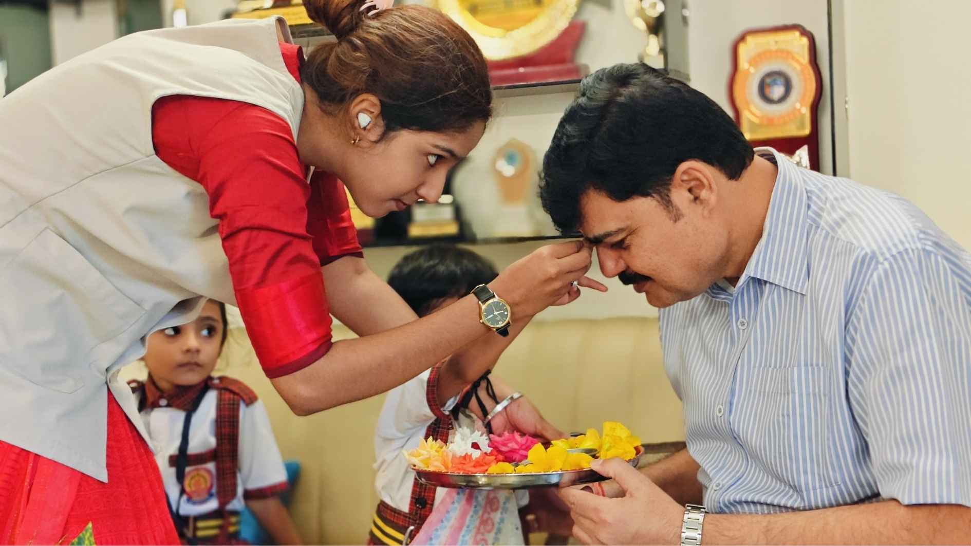 इस विशेष अवसर पर छात्र-छात्राओं ने बड़ीयातू थाना प्रभारी मनोज कुमार को उनके कार्यालय में जाकर राखी बांधी और पुलिस बल को उनकी निःस्वार्थ सेवा और सुरक्षा के लिए आभार व्यक्त किया।