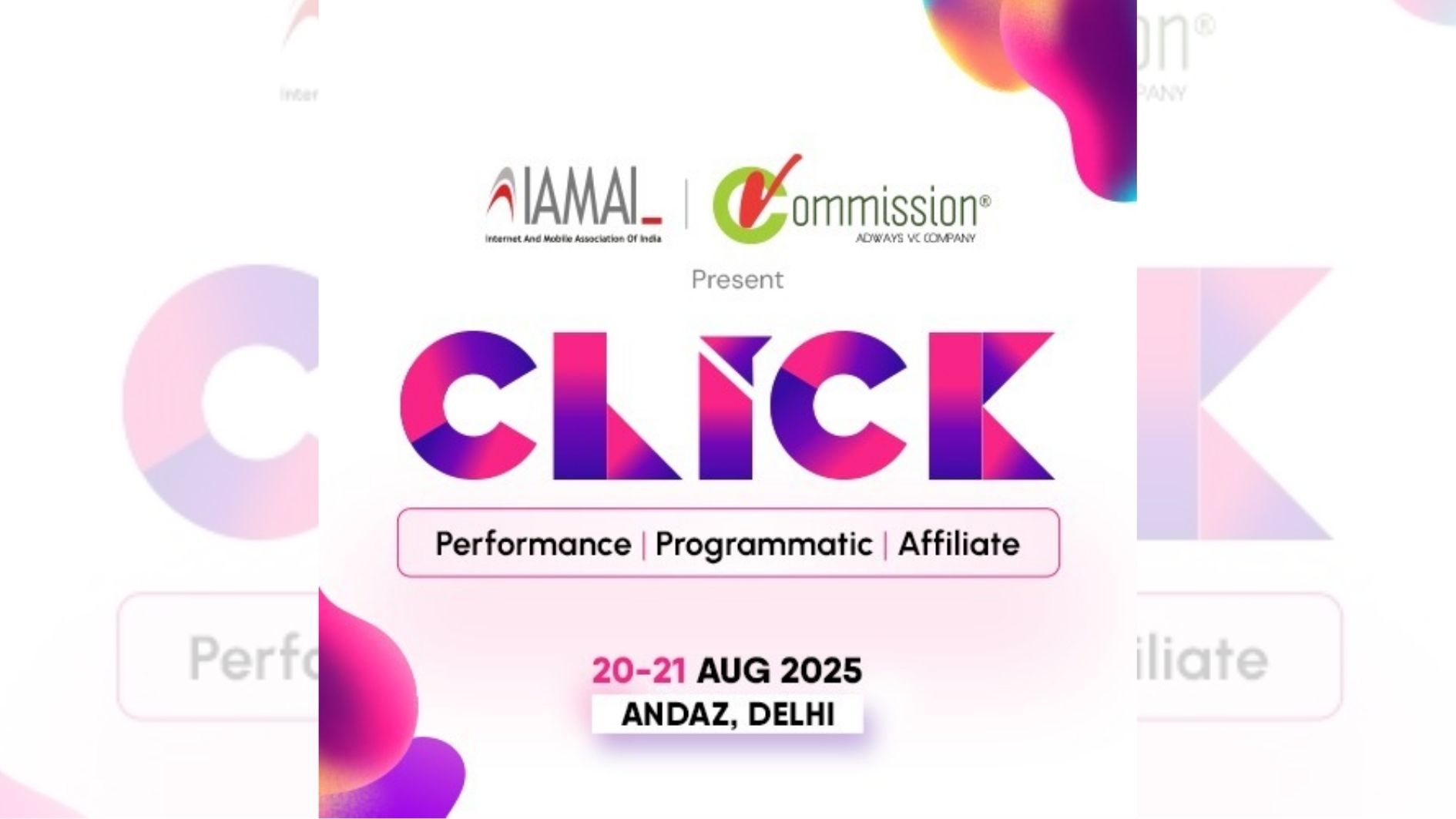 इस बार इसका नाम ” क्लिक 2025 ” होगा, जिसमें परफॉर्मेंस मार्केटिंग के अंतर्गत आने वाले सभी सब-सेक्टर्स शामिल होंगे। इसे इंटरनेट एंड मोबाइल एसोसिएशन ऑफ इंडिया (आईएएमएआई) द्वारा आयोजित किया जा रहा है और यह 20-21 अगस्त को नई दिल्ली स्थित अंदाज़ में होगा।