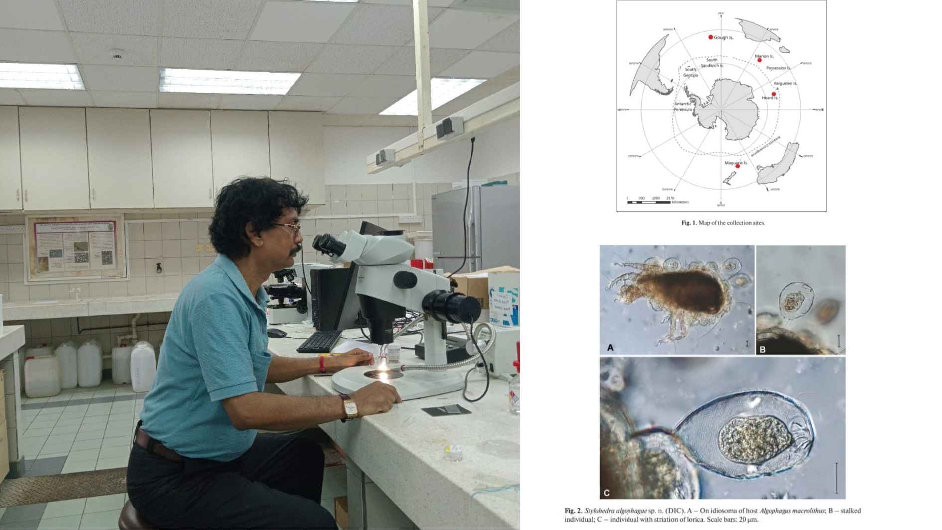 A major highlight of the publication is the discovery and description of a new species, Stylohedra algophagae Chatterjee et al., identified from supratidal pools at Macaroni Bay on Marion Island. This species belongs to the ciliata group and exists as an epibiont attached to mites of the Algophagidae family under the phylum Arthropoda.